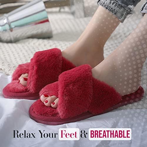 - Soft and Cozy: Experience ultimate comfort with these Mervace Italiano women’s fuzzy memory foam slippers. The plush cross band and fluffy furry open toe provide a cozy feel, making them perfect for indoor and outdoor use.